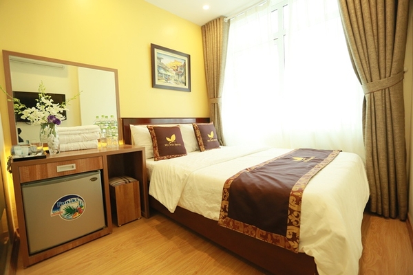 Phòng Deluxe Double của My Iris Hotel được trang trí trong một không gian ấm cúng, đảm bảo đầy đủ tiện nghi, thoải mái cho khách hàng.